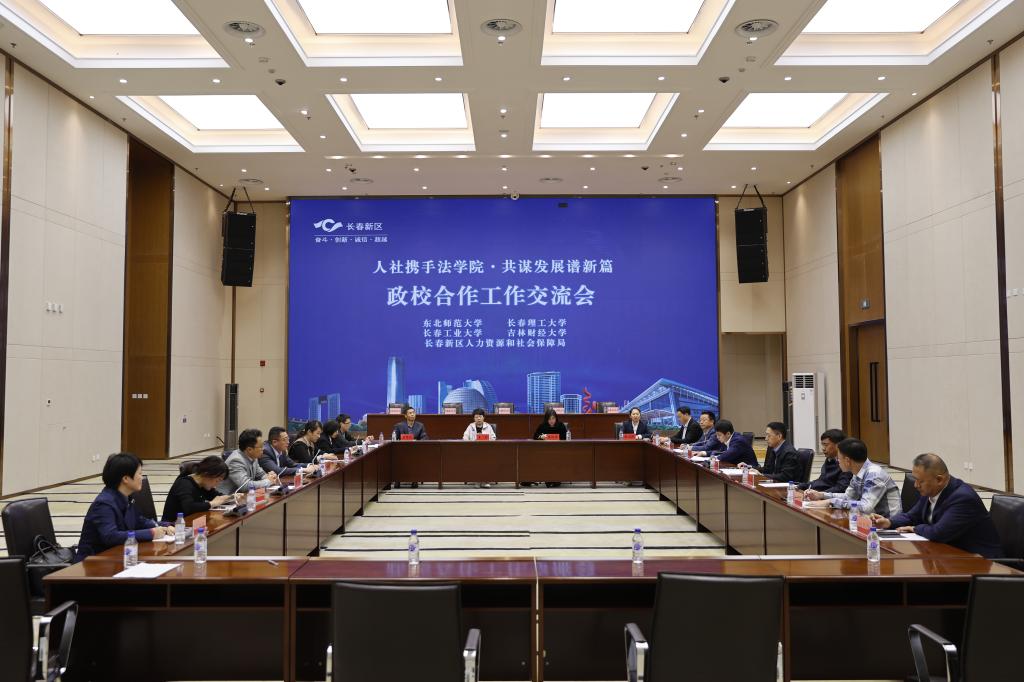 签约仪式上,政校双方就合作具体内容进行深入交流。长春新区人社局孙立波局长指出,目前新区市场主体多、任务重,非常需要各高校具有法学专业知识背景的师生为仲裁助力,开拓学术共研、人员互融、平台共享、人才共育的合作渠道,创新人才培养模式,促进校政资源共享共建,增强对仲裁调解的“智库”支持。
