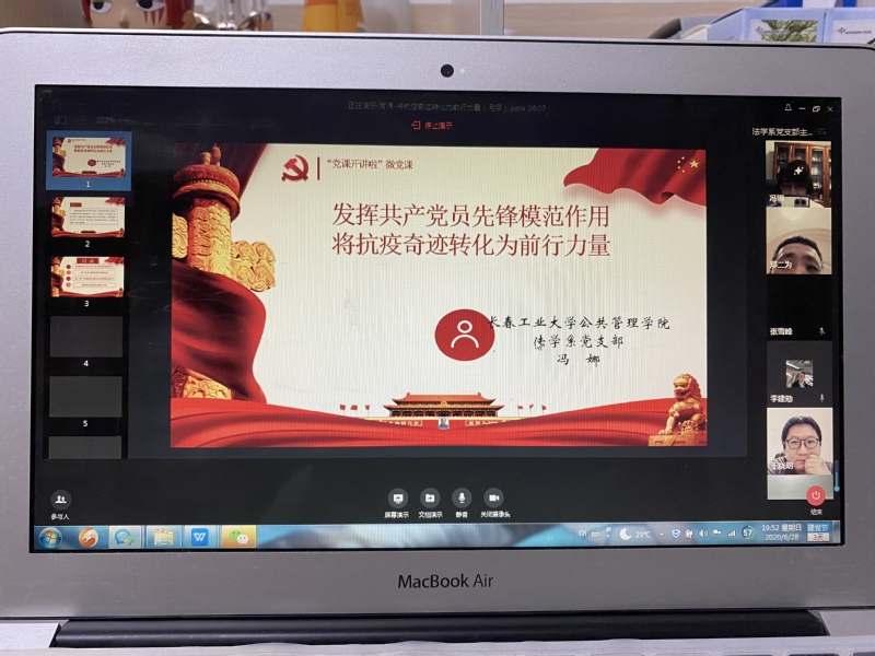 根据省委组织部及省委教育工委相关工作要求,根据学校关于组织“党课开讲啦”活动的工作部署,开云kaiyun官方网站法学系党支部于2020年6月24日组织了题为《发挥共产党员先锋模范作用 把抗疫奇迹转化为前行力量》的专题党课。