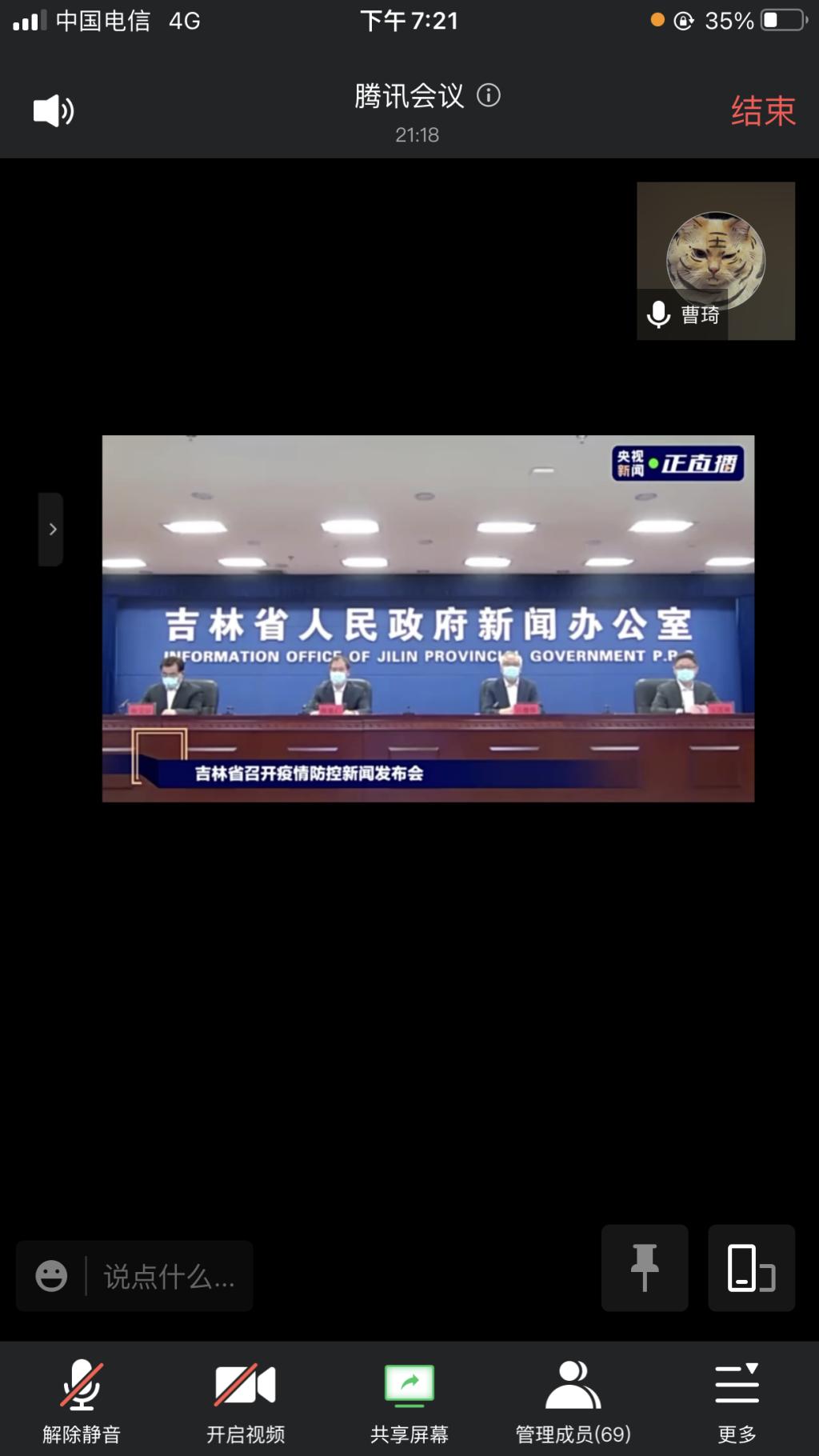 会议第二项,党支部成员共同观看吉林省疫情防控新闻发布会。了解我省疫情防控的最新情况。