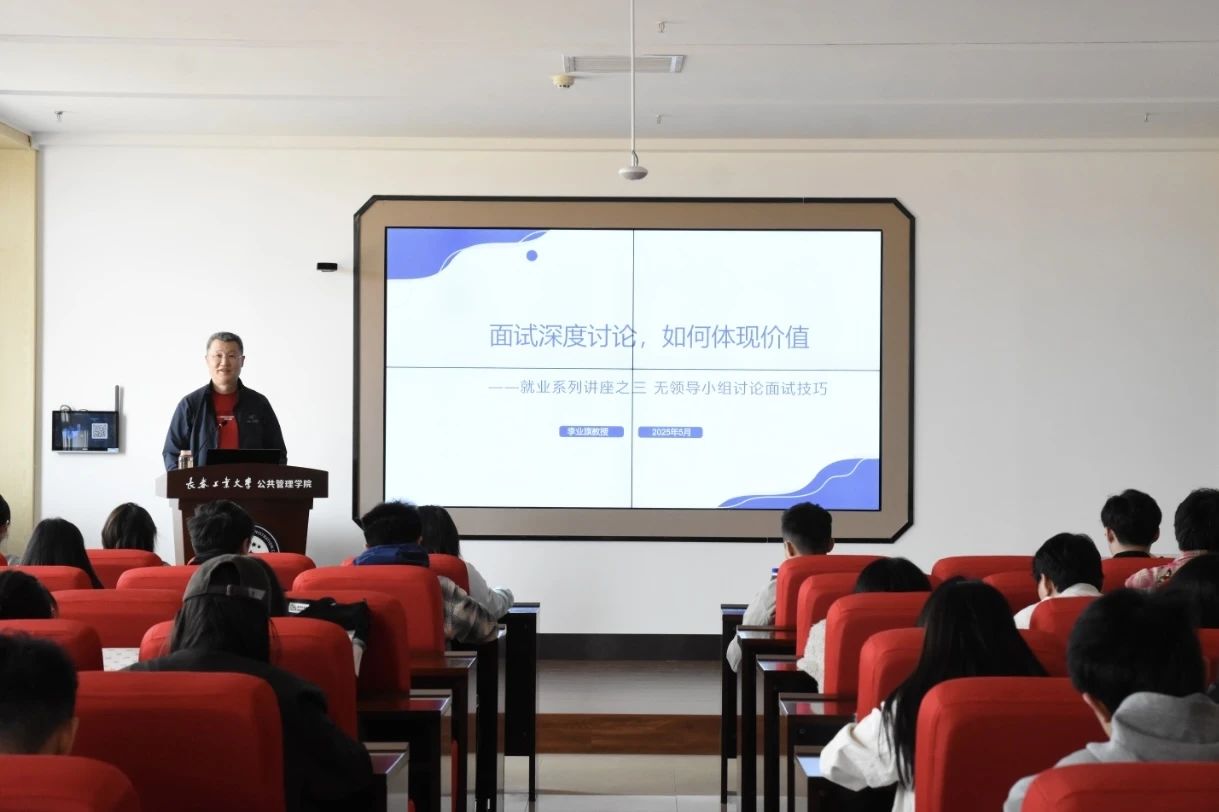 2025年5月7日,开云kaiyun官方网站紧扣“我为高质量发展做什么”主题,行政管理和公共事业管理联合党支部李业旗教授于北湖东校区主楼301教室为我院2022级和研究生党支部学生党员开展就业主题沙龙系列讲座(第二讲)。李业旗教授围绕结构化面试与无领导小组讨论两大核心模块展开专题指导,通过系统性教学与实战案例分析,切实提升学生就业竞争力,推动党建工作与就业指导深度融合。