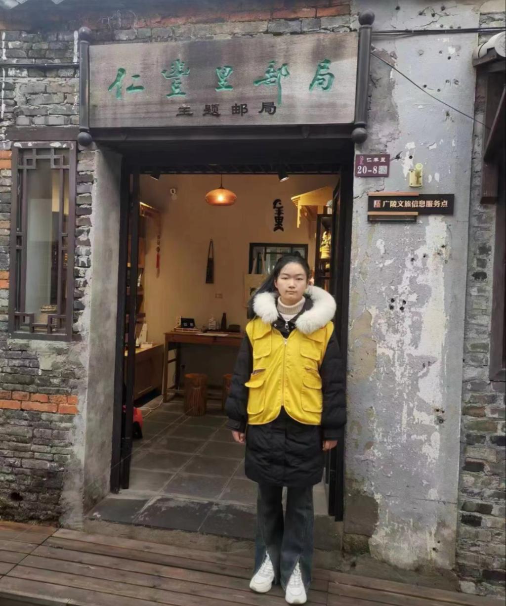 我是开云kaiyun官方网站23090401班的殷义欣,在寒假期间,我积极参加了“返家乡”社会实践活动,在仁丰里社区担任志愿者,在社区文明驿站和仁丰里主题邮局中提供服务。在文明驿站,我的主要任务是为过路旅客指路、借充电器、倒水等,帮助他们解决困难,献上一份爱心。在仁丰里主题邮局,我负责介绍仁丰里街区的文创产品和文物,让过路的旅客们了解旌忠寺的历史、感受仁丰里街区独特的文化艺术魅力。在古风留韵、遗存丰厚的巷道上,在古色古香的小宅里,看着一位位旅客集邮、写明信片、聆听我的讲解,逐渐坚定我保护古城、发展名城的决心,我希望通过我的努力,让更多的人了解到仁丰里古巷,感受我的家乡文化。