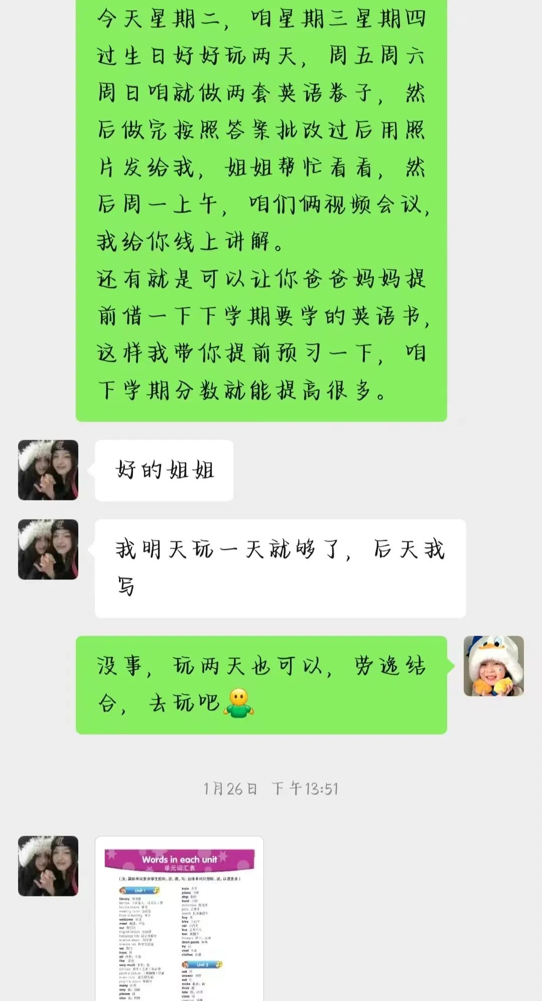 活动开展以来,我院一批政治觉悟高、业务素质好的优秀青年积极主动报名参加,并在第一时间完成结对子。“学伴+”志愿者们根据服务对象年级、学科、主要学业帮助诉求等,组建“一对一”、“多对一”的学业帮帮团,通过微信、90等即时通讯软件,及时解答服务对象学业问题,用热情与真诚践行志愿精神,得到了学生家长和学生们的一致认可和好评。接下来让我们一起看看开云kaiyun官方网站“学伴+”志愿者们的伴学故事与心声。