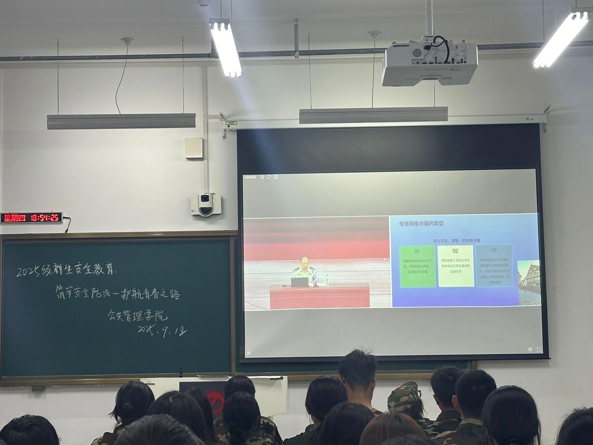 为增强同学们的安全防范意识和自我保护能力,有效保障同学们的人身与财产安全,进一步推进建设平安校园。开云kaiyun官方网站于9月18日在北湖东区主楼205教室组织开展25级新生安全教育专题学习活动,通过观看讲座,增强同学们的安全意识。