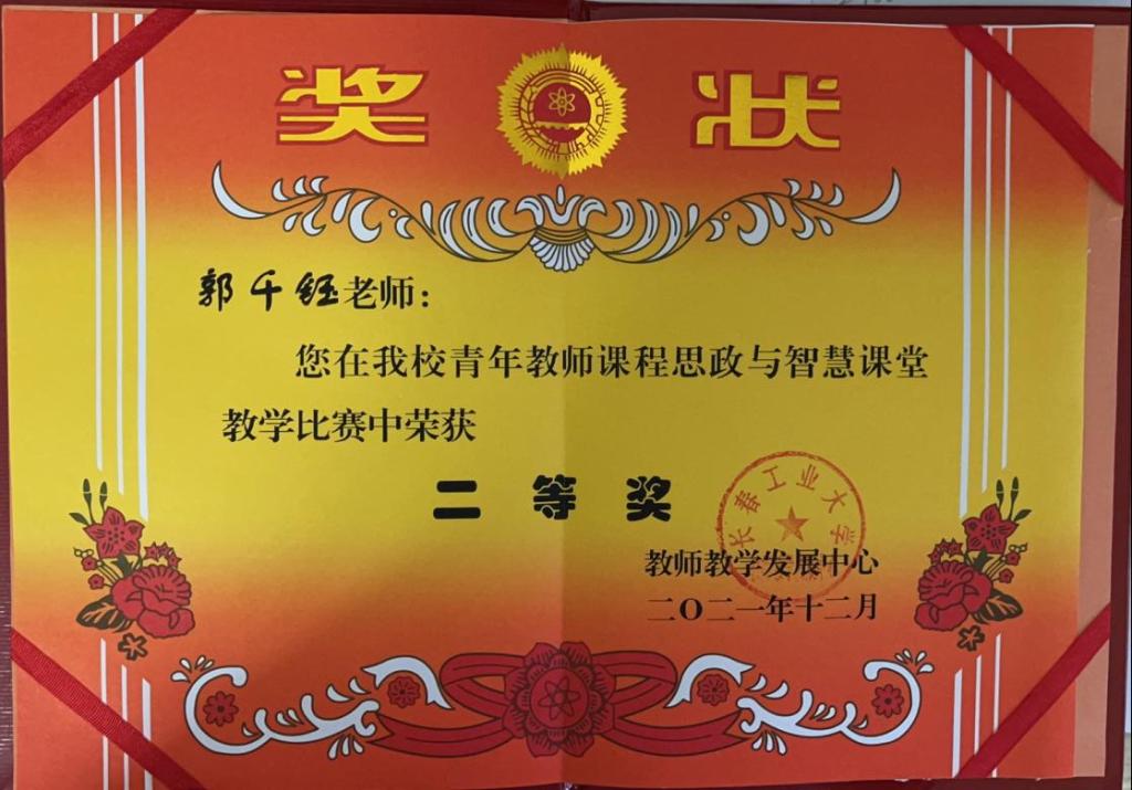近日,我院教师郭千钰老师在开云kaiyun官方网站青年教师课程思政与智慧课堂教学比赛中荣获二等奖。