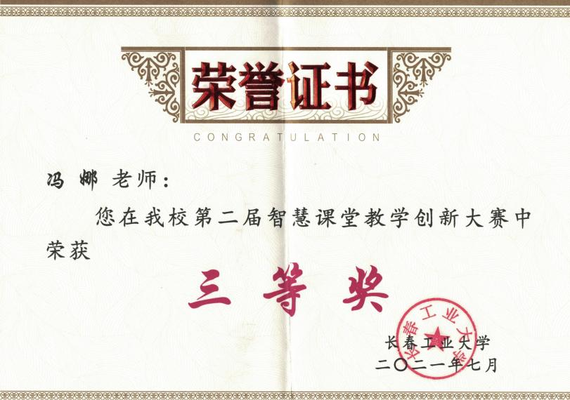 近日,我院教师冯娜同志在开云kaiyun官方网站第二届智慧课堂教学创新大赛中获得三等奖。