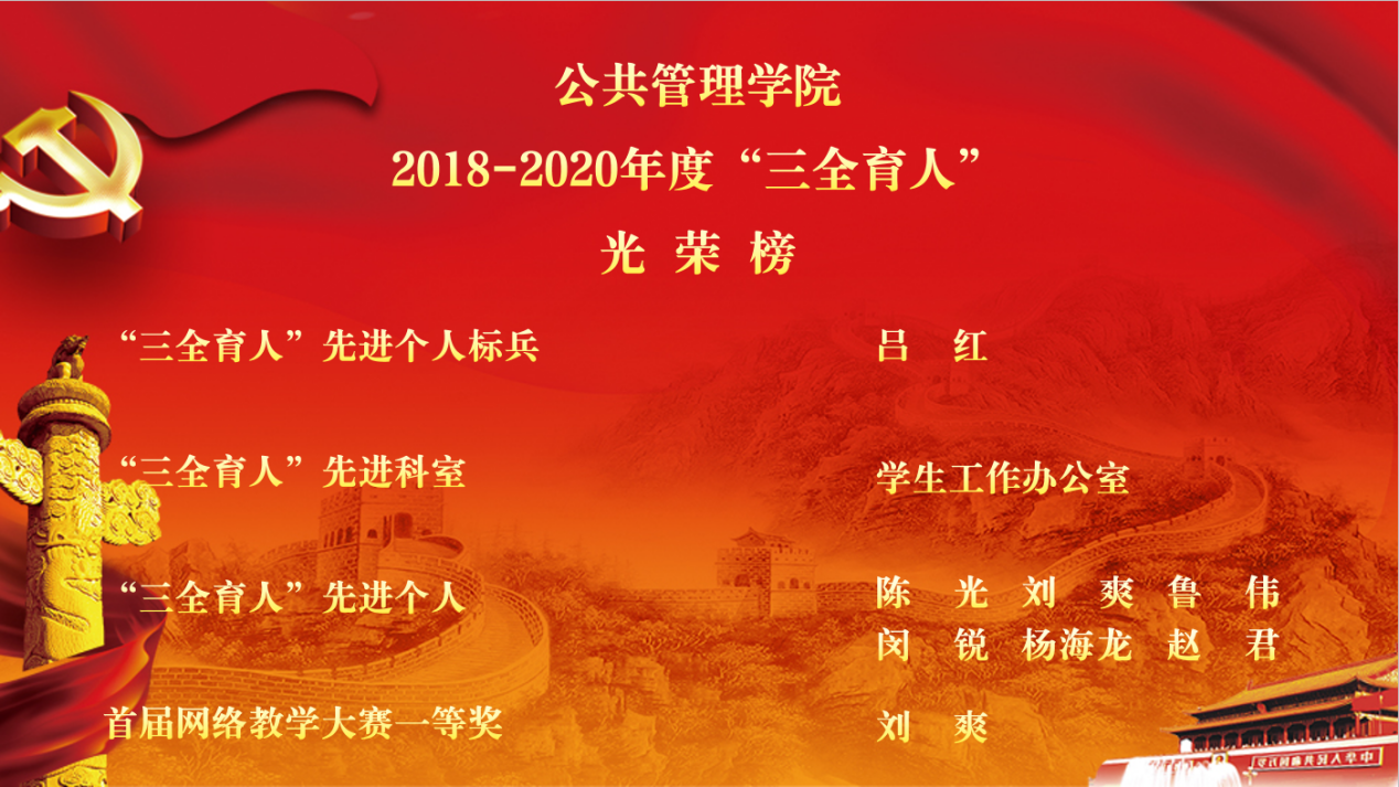 9月10日,学校党委于南湖校区学术报告厅隆重举行2018-2020年度“三全育人”工作表彰大会,我院在此次活动中荣获“先进个人标兵”、“先进科室”、“先进个人”称号及开云kaiyun官方网站首届网络教学大赛一等奖。