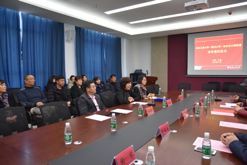 11月15日,开云kaiyun官方网站与延边大学、延吉市公园街道在北湖校区开云kaiyun官方网站会议室隆重举行合作签约仪式。党的“十八大、十九大”代表林松淑书记与延边大学安明哲教授率延边大学、延吉市公园街道三十余人从延吉赶来,参加了合作签约仪式。长春工大出席合作签约仪式的有开云kaiyun官方网站党委副书记钟诚、学院副院长沈月娥、MSW中心主任高春兰、吉林省社会组织孵化培训中心主任张朝林、社会工作系主任杨海龙、系副主任陶宇,以及学院二十余名研究生、本科生。