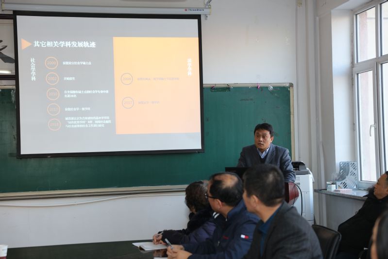 调研会上,曲永军院长结合学院实际,从公共管理学科的发展轨迹、基本情况汇报了公共管理学科的建设情况,并对照2017年3月教育部学位办发布的公共管理学科博士学位授权点申请基本条件,从学科方向与特色、学科队伍、人才培养、培养环境与条件四个方面进行了详细的对比分析,通过比对省内拥有公共管理一级学科硕士学位授予权的5所高校以及全国拥有博士学位授予权的13所高校,找出学科建设过程中存在的问题,并提出要以学术创新团队为依托,鼓励老师多出高水平成果;加强研究生培养质量,提高对学院科研工作的贡献率;鼓励教师积极参加学术交流活动,扩大学科影响力,并邀请知名学者来校指导学科的发展,开展坚实的学科建设工作。