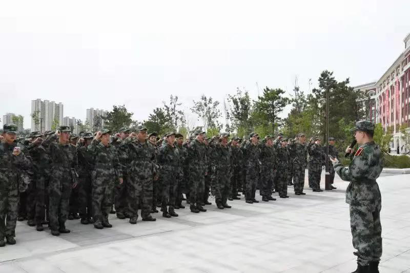 21级军训教官也与同学们正式见面,对同学们做出军训要求,纠正同学们的军容风纪,最后教官将队伍带开,到广场进行军事技能基础训练。