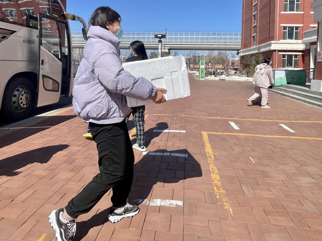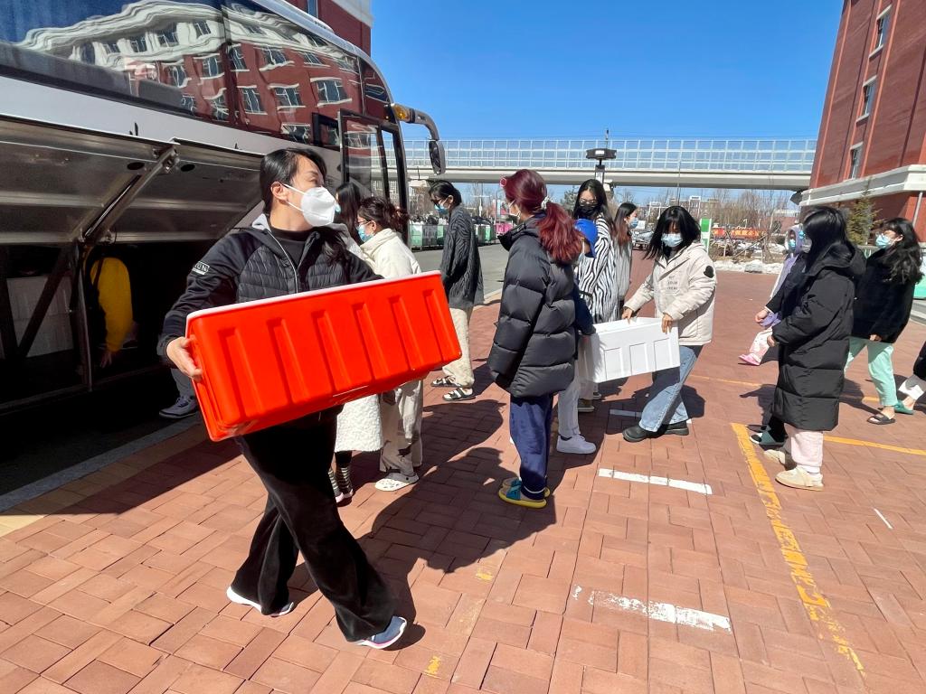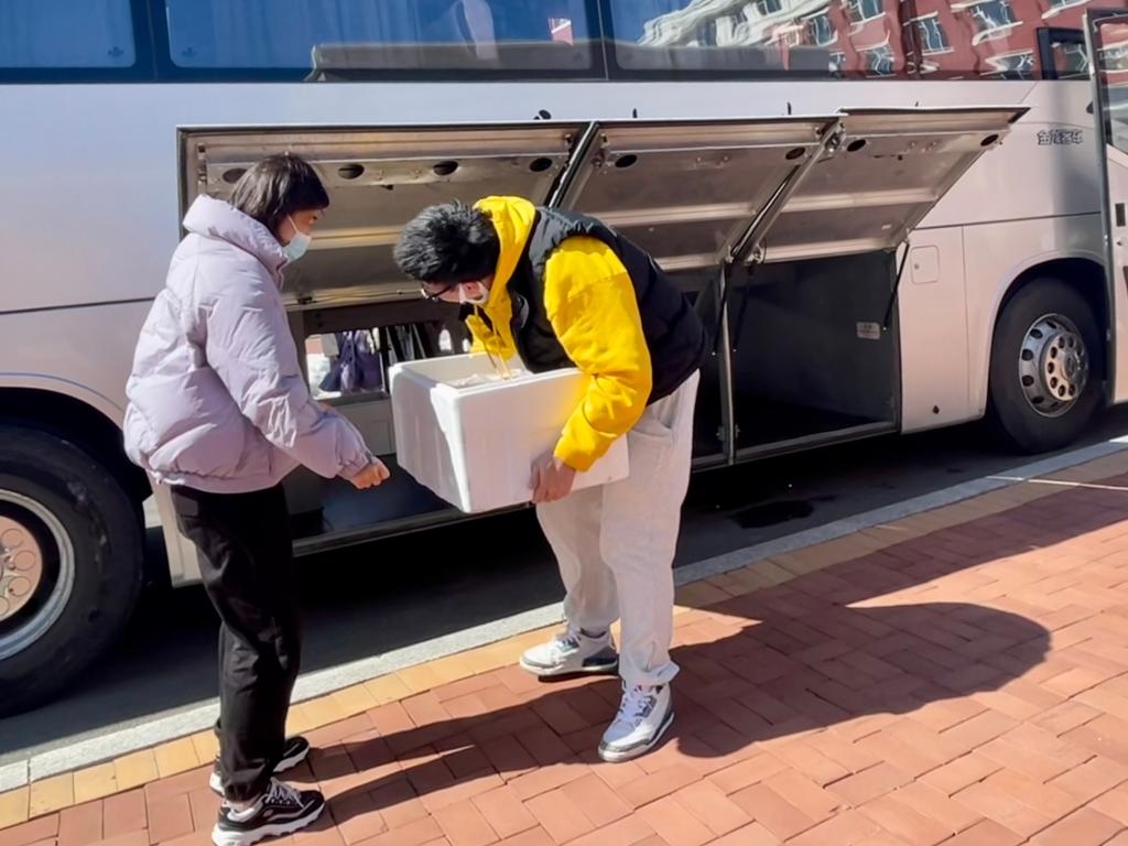 2022年3月18日,学校管控升级,实施封楼封寝的静态管理模式,学生们不再出入公寓楼。为满足学院849名在校学生一日三餐的需要,学院的领导和老师再次切换身份,驻校抗疫团队变成“餐饮保障工作专班”,亲爱的老师们化身“外卖小哥”。