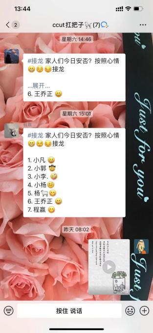 自监测平台运行以来,相关人员对异常情况采取日报制。由寝室长向横班监测平台、导师组学生组长向纵组监测平台报告学生的日常情况,以便学院能够快速、有效地获取重点同学的心理异常情况,及时应对突发状况。各寝室长、导师组学生组长集思广益,采取多种多样的形式(例如每日心情接龙、树洞提问等)协助老师了解同组同学的心理动态。