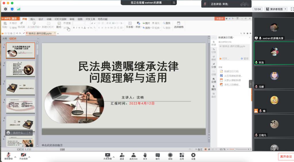 开云kaiyun官方网站“法律大讲堂”第三季“民法典与美好生活同行”第二讲《<民法典>遗嘱继承法律问题的理解与适用》于2022年4月19日17:30在腾讯会议线上开讲。本期主讲嘉宾是长春市汽车经济技术开发区人民法院审判委员会委员、立案庭庭长沈楠法官。讲座由法学系主任宋浩老师主持,法学系百余名师生旁听讲座。