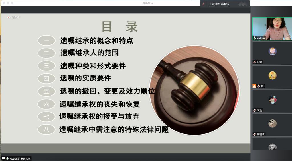 法官讲法典,法典有温度。沈法官的讲座为同学们清晰梳理了遗嘱继承的相关知识,指出了办理遗嘱继承案件时需要注意的法律问题,为同学们进一步读懂《民法典》、用法学原理解决实践中存在的问题提供了新的思路和视角。