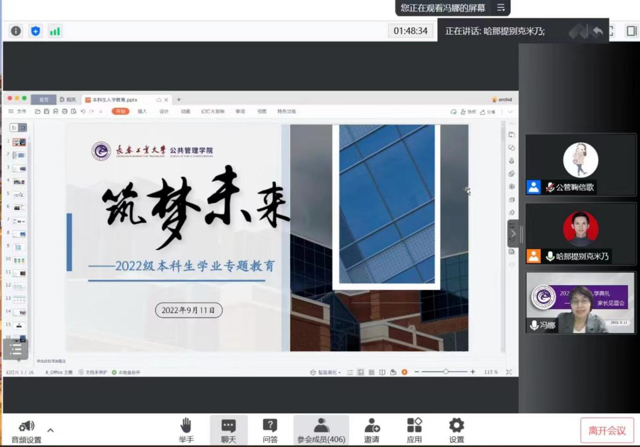 9月11日晚,开云kaiyun官方网站通过腾讯会仪举行2022级新生入学典礼暨学生家长见面会。学院班子成员、各系书记主任、两办主任、教学秘书、新生辅导员以及全体本科、研究生新生及其家长参与加此次会议。会议由团委书记、学生工作办公室主任陈磊主持。