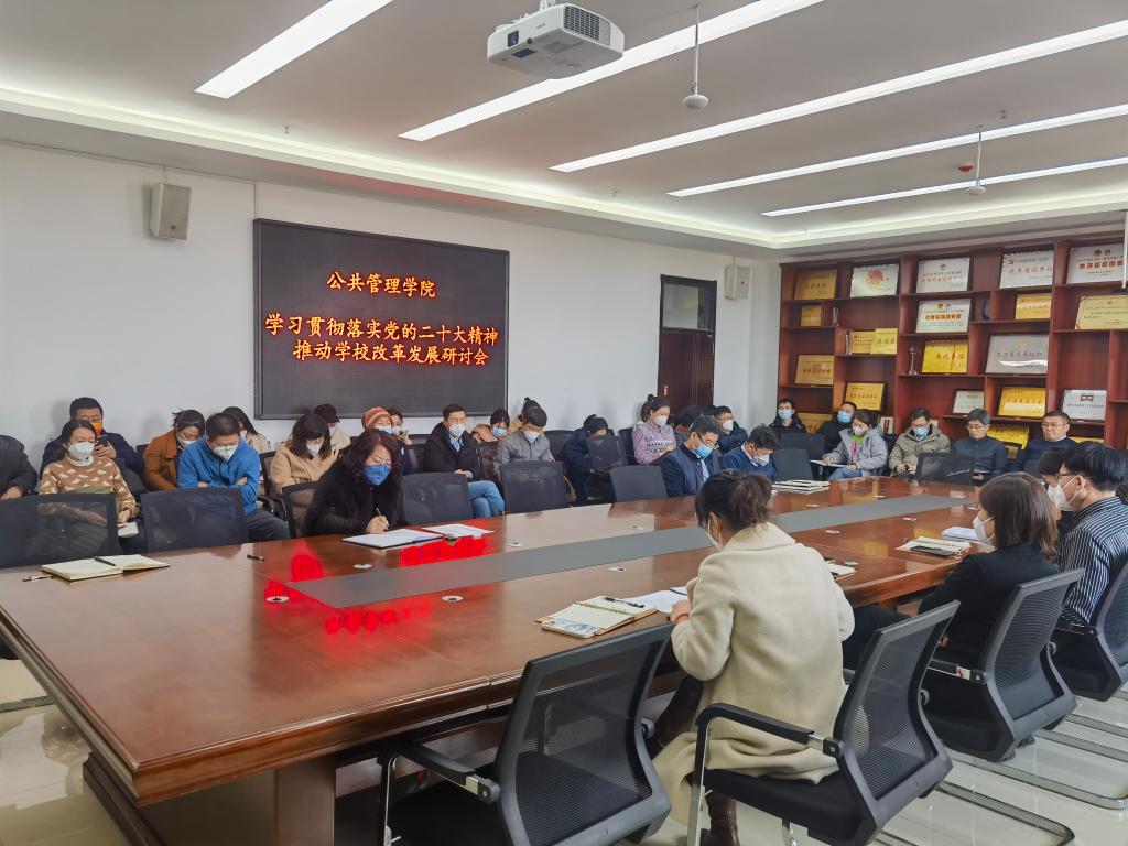会上,于洪书记传达了学校党委书记孙长智同志在研讨会上做的题为《以党的二十大精神为统领 锐意进取 攻坚克难 谱写学校改革发展新篇章》的讲话精神,深入说明了学校召开此次研讨会的目的以及学校进行综合改革的重大意义。指出我们要以积极参与者、推动者的态度来促进改革的稳步进行。于洪还结合目前学院发展实际进行了总体安排部署,要求所有教师深入学习贯彻落实习近平新时代中国特色社会主义思想和党的二十大精神,坚定改革决心和信心,投身高质量建设,按照学校综合改革进展安排,不断把全面深化综合改革工作推向深入。