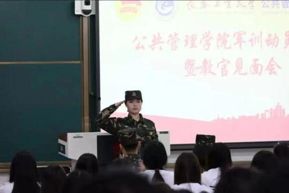 教官见面会环节。首先,三位承训教官分别进行自我介绍,并与所在排班干部进行对接。随后,排长王帅带领同学们学习军训学生行为规范等各项纪律要求,通过进一步细致讲解,使同学们对此次军训有了更充分的了解与准备。最后,由教官王梓带领同学们学习演唱强军战歌。