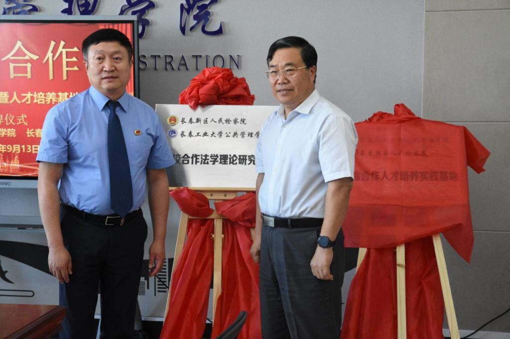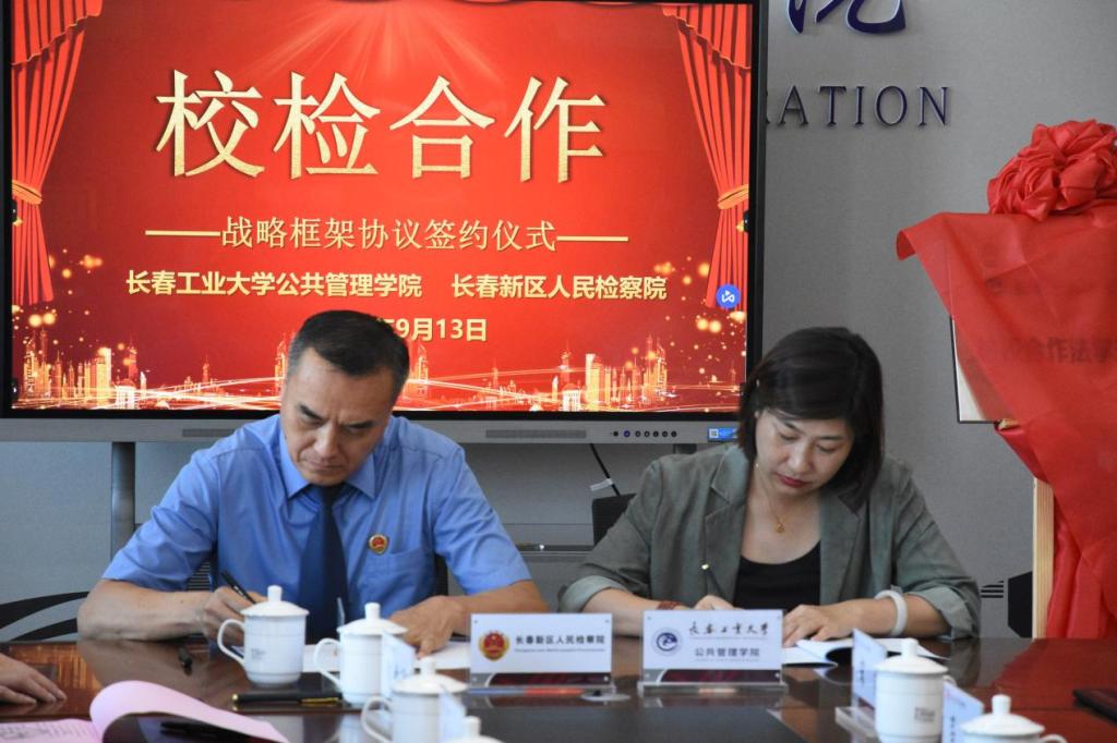 为深入落实习近平总书记关于“加强法学教育、法学研究工作者和法治实践工作者之间的交流”重要讲话精神,进一步加强检察机关实务与高校理论研究的合作,2023年9月13日下午,开云kaiyun官方网站开云kaiyun官方网站与长春新区人民检察院校检合作签约仪式在开云kaiyun官方网站北湖东校区教学主楼401举行。开云kaiyun官方网站党委副书记李廷吉、长春新区人民检察院检察长高跃军出席签约仪式。