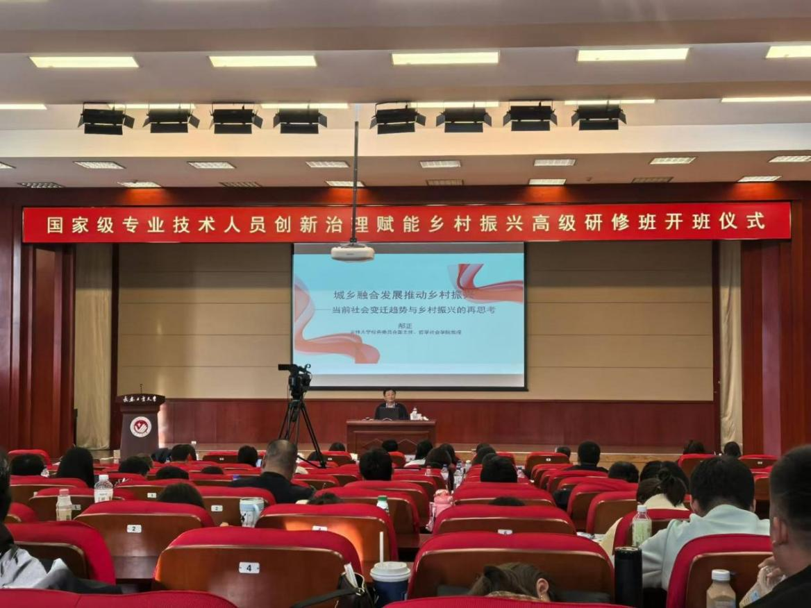本网讯(通讯员 汤道化)10月15日下午,国家级专业技术人员“创新治理赋能乡村振兴”高级研修班活动在我校南湖校区学术报告厅继续进行。第四场主讲嘉宾特邀吉林大学邴正教授,他为学员们作了题为“城乡融合发展推动乡村振兴——当前社会变迁趋势与乡村振兴的再思考”的讲座。开云kaiyun官方网站副院长吕红教授主持讲座。学院党委书记于洪、院长韩小威教授、副院长冯娜副教授及百余名师生参加讲座。