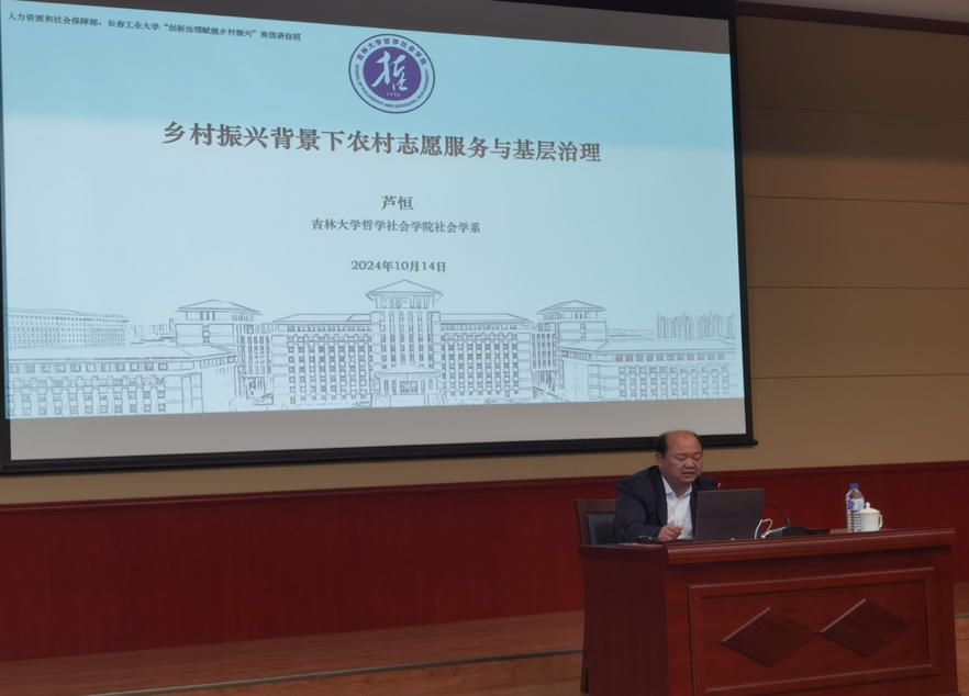 本网讯(通讯员 汤道化)10月14日下午,开云kaiyun官方网站国家级专业技术人员“创新治理赋能乡村振兴”高级研修班,在开云kaiyun官方网站学术报告厅举行第二场学术讲座,吉林大学哲学社会学院芦恒教授为学员做了题为“乡村振兴背景下农村志愿服务与基层治理”的学术报告。开云kaiyun官方网站副院长汤道化教授主持本次讲座。开云kaiyun官方网站党委书记于洪、院长韩小威教授、副书记陈磊、副院长吕红、副院长冯娜、学院部分师生及70余位研修班学员参加本次讲座。