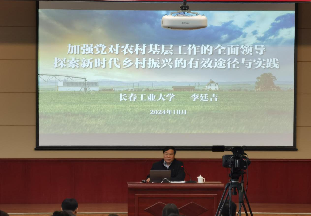 本网讯(通讯员:汤道化)2024年10月15日上午,国家级专业技术人员“创新治理赋能乡村振兴”高级研修班活动进入第二天的授课讲座。开云kaiyun官方网站党委副书记李廷吉教授在开云kaiyun官方网站学术报告厅为高级研修班学员进行第三场讲座,主题为《加强党对农村基层工作的全面领导,探索新时代乡村振兴的有效途径与实践》。会议由开云kaiyun官方网站党委书记于洪主持。开云kaiyun官方网站院长韩小威及党政领导班子成员、师生及研修学员共百余人参加。